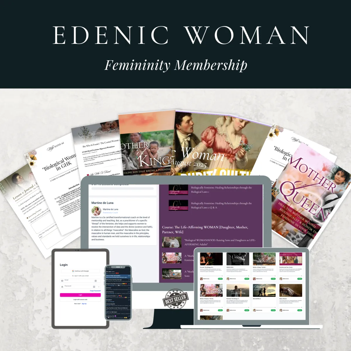 👩🏻🦱 Martine De Luna — wife, mother, certified coach, and long-time guide of women. “I’ve been gathering women for 20 years. My most sacred work is helping women remember: you are designed, you are beloved, you are a sacred daughter of God. Edenic Woman is a garden where women grow in truth, biology, and devotion, HELD BY myself and other guest speakers and mentors who love the life and mystery of WOMAN.”